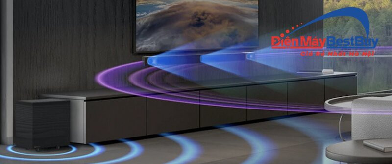 Để nâng tầm không gian giải trí tại gia, hãng sản xuất đã tích hợp thêm công nghệ âm thanh vòm DTS Virtual X. Hệ thống âm thanh tiên tiến này sẽ tự động phân tích và tái tạo các hiệu ứng 3D đa chiều, mang lại cảm giác sống động lan tỏa trọn vẹn đến mọi ngóc ngách trong căn phòng.