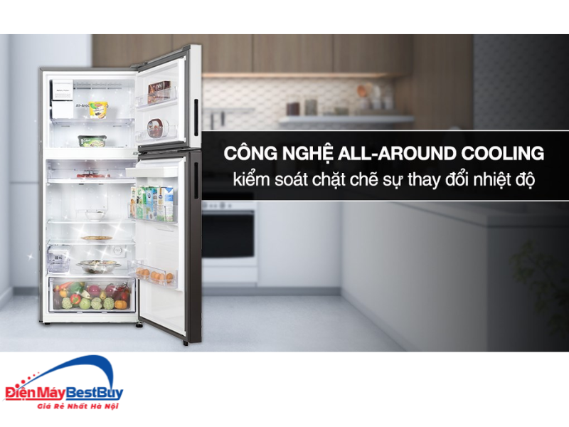 Tủ sử dụng công nghệ Digital Inverter giúp tiết kiệm điện và vận hành ổn định. Bên cạnh đó, hệ thống làm lạnh All-around Cooling giúp duy trì nhiệt độ đồng đều trong từng ngăn.