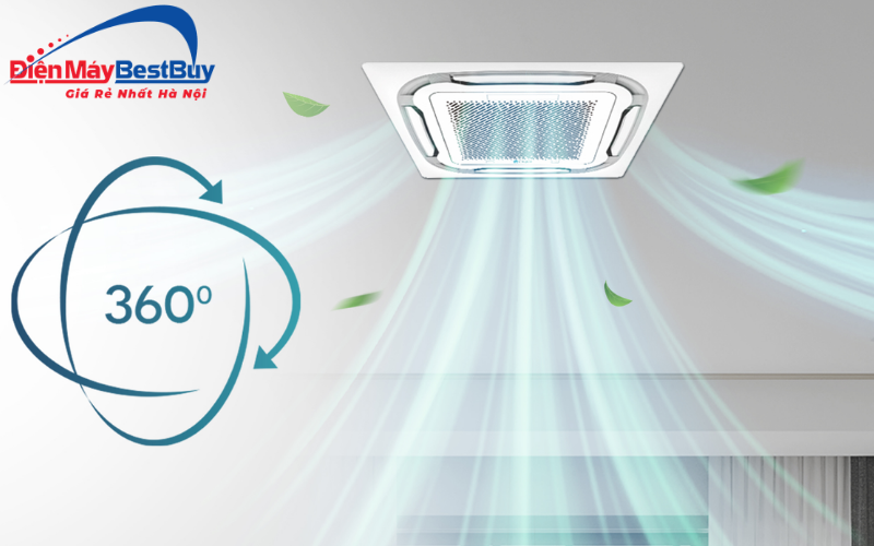 Khe cấp gió tươi với cơ chế thổi gió 360° cho phép luồng khí lạnh được phân tán theo nhiều hướng khác nhau từ trung tâm dàn lạnh, giúp khí mát lan tỏa đều khắp căn không gian.