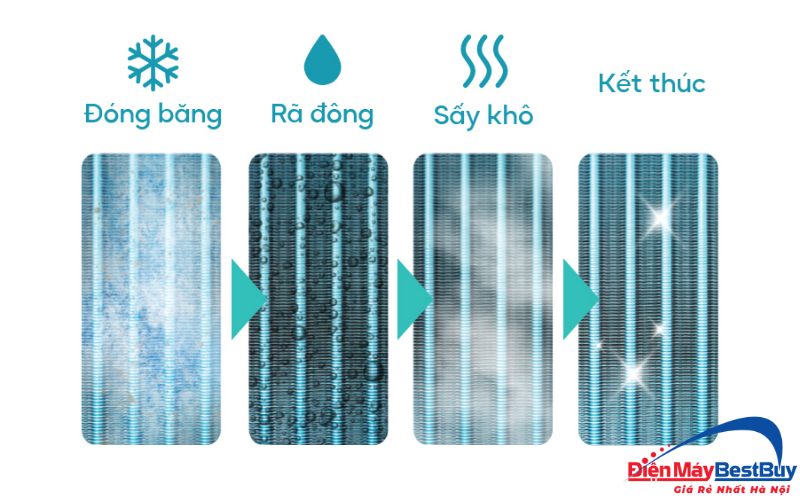 Quá trình này giúp loại bỏ độ ẩm còn lại bên trong thiết bị, từ đó hạn chế sự hình thành của nấm mốc và vi khuẩn. Nhờ vậy, luồng không khí thổi ra từ điều hòa luôn sạch hơn và không gây mùi khó chịu.