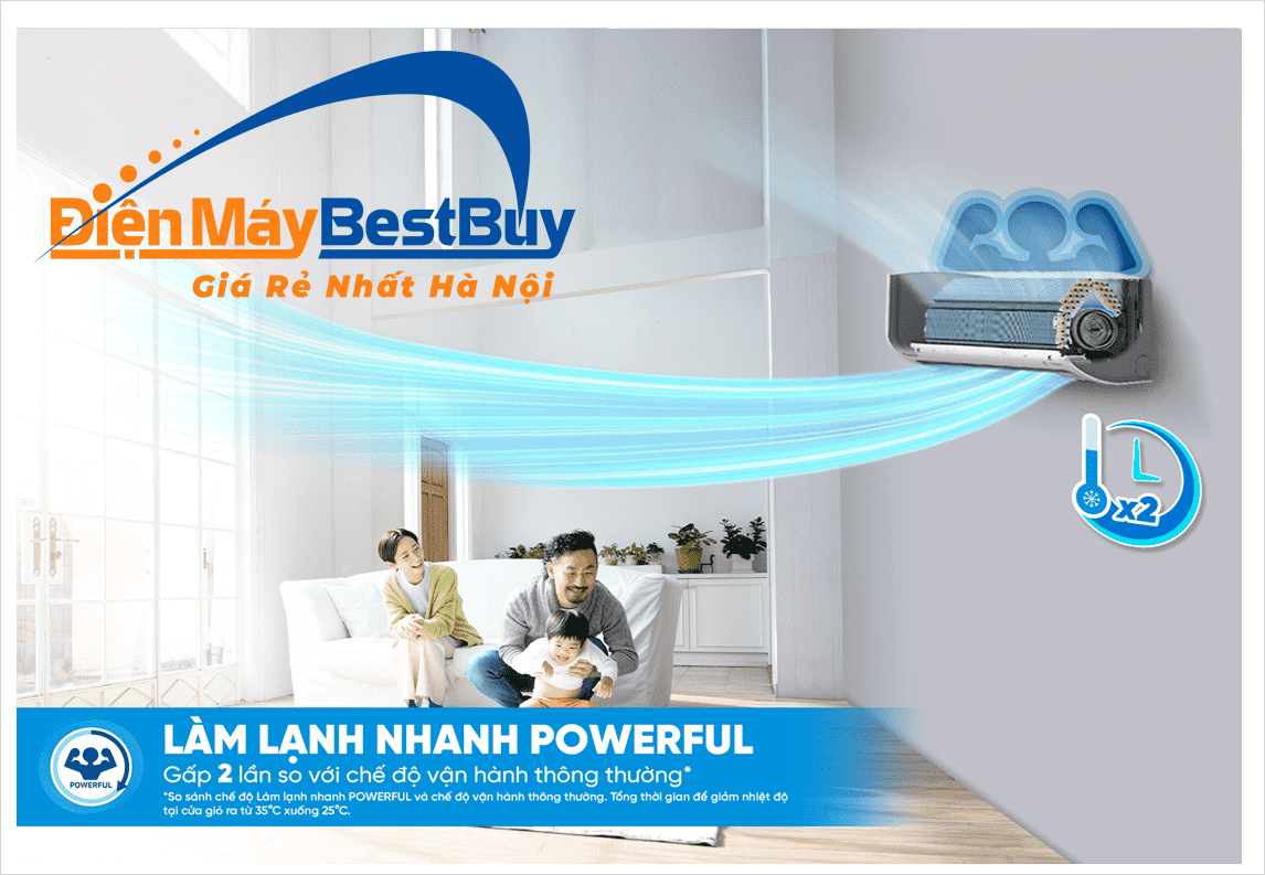 🔥 Chế độ làm lạnh cực nhanh Powerful – Mát tức thì chỉ sau vài phút