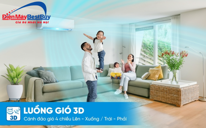 Chế độ Powerful giúp điều hòa tăng cường công suất trong thời gian ngắn, đẩy nhanh quá trình làm lạnh để phòng sớm đạt mức nhiệt mong muốn. Sau đó, máy tự động điều chỉnh về chế độ vận hành ổn định, duy trì sự mát mẻ dễ chịu mà không gây cảm giác lạnh gắt. Kết hợp cùng cánh đảo gió 3D lên xuống - trái phải, luồng khí lạnh được phân bổ đều, hạn chế hiện tượng chênh lệch nhiệt độ giữa các khu vực trong phòng.