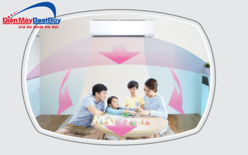 Khi làm mát, luồng gió được phân phối nhẹ nhàng, giảm cảm giác lạnh buốt tại một vị trí cố định. Khi sưởi ấm, không khí ấm được đưa xuống thấp hơn, giúp nhiệt độ trong phòng cân bằng và dễ chịu hơn. Đây là yếu tố quan trọng giúp nâng cao sự thoải mái, đặc biệt khi sử dụng điều hòa trong thời gian dài.