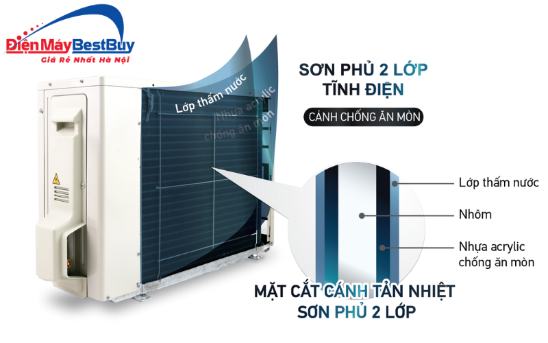 Dàn nóng được hoàn thiện chắc chắn, phù hợp lắp đặt ngoài trời và chịu được tác động của thời tiết trong thời gian dài.