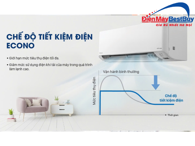 Nhờ chế độ Econo, người dùng có thể yên tâm sử dụng điều hòa mà vẫn kiểm soát tốt mức tiêu thụ điện năng hàng tháng.