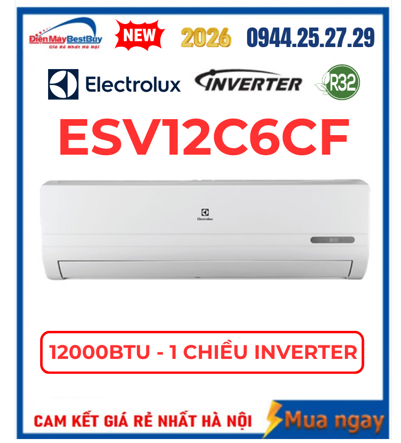 Điện máy BESTBUYS phân phối điều hòa Electrolux ESV12C6CF 12000BTU 1 chiều inverter chính hãng với giá thành cạnh tranh nhất thị trường. Sản phẩm được bảo hành 5 năm cho máy nén và 12 tháng cho dàn lạnh giúp khách hàng thêm an tâm trong quá trình sử dụng.
