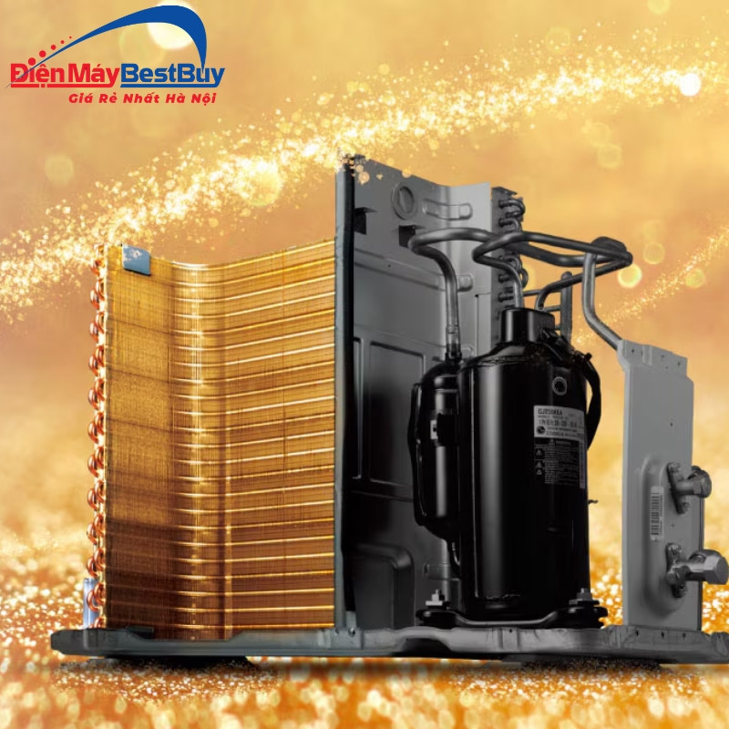 Chất liệu dàn tản nhiệt: Ống dẫn gas bằng Đồng – Lá tản nhiệt bằng Nhôm được phủ lớp Golden Fin