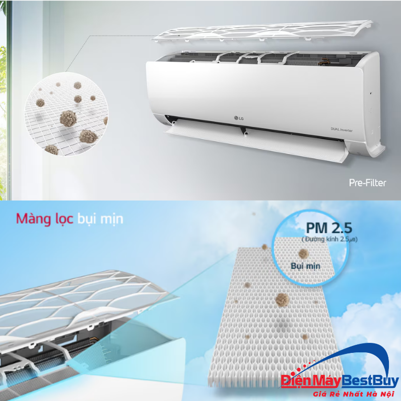 - Màng lọc bụi mịn PM 2.5 hỗ trợ loại bỏ đến 90% các hạt bụi mịn trong không khí.