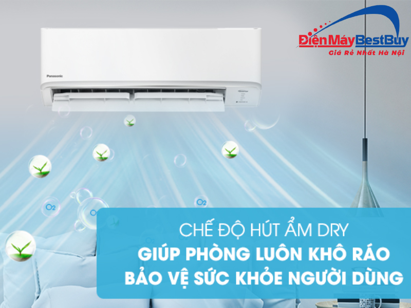 Chế độ Dry mode trên điều hòa Panasonic 18000 BTU 2 chiều Inverter XZ18BKH-8 giúp giảm độ ẩm trong không khí một cách hiệu quả, đặc biệt phù hợp với thời tiết nồm ẩm hoặc mưa nhiều. Chế độ này duy trì độ ẩm ở mức cân bằng, giúp không gian luôn khô ráo, thoáng đãng mà không gây lạnh buốt.