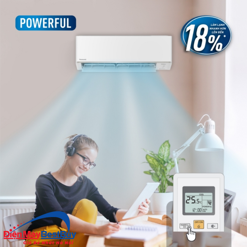 Chế độ Powerful đặc biệt hữu ích trong những ngày nắng nóng cao điểm, khi phòng có nhiều người hoặc khi bạn vừa đi ngoài trời nắng về. Người dùng có thể cảm nhận sự thay đổi nhiệt độ rõ rệt chỉ sau vài phút, mang lại cảm giác dễ chịu gần như tức thì. Sau khi đạt đến nhiệt độ cài đặt, máy sẽ tự động chuyển về chế độ vận hành ổn định, tránh lãng phí điện năng nhờ sự hỗ trợ của công nghệ Inverter.