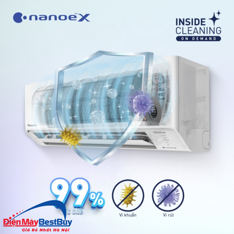 Điều hòa Panasonic RU12CKH trang bị công nghệ nanoe™ X giúp cải thiện chất lượng không khí trong không gian sống. Công nghệ này tạo ra các gốc hydroxyl có khả năng ức chế vi khuẩn, virus, nấm mốc và các tác nhân gây mùi.