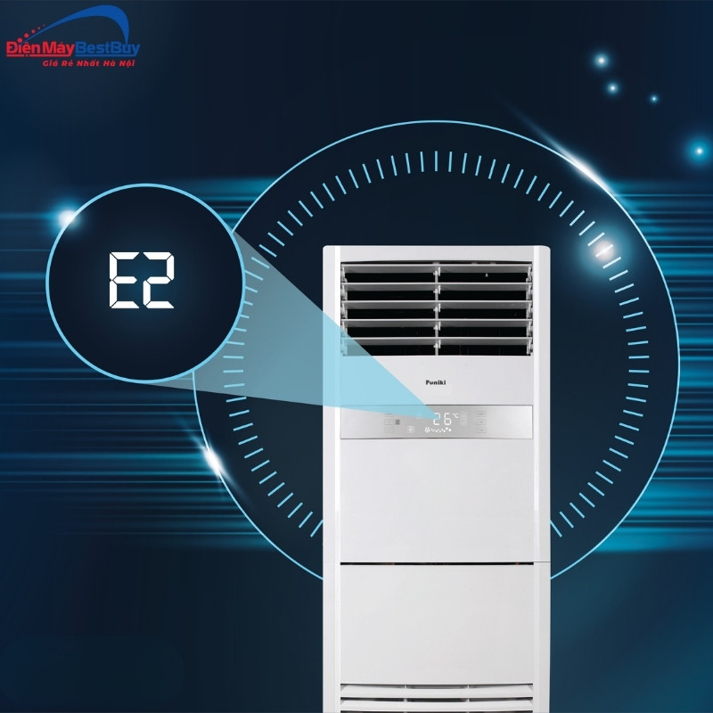 Điều hòa tủ đứng Funiki tích hợp tính năng chẩn đoán lỗi tự động. Khi gặp sự cố, hệ thống sẽ hiển thị mã lỗi trên màn hình hoặc bảng điều khiển, giúp người dùng nhanh chóng nhận biết vấn đề.