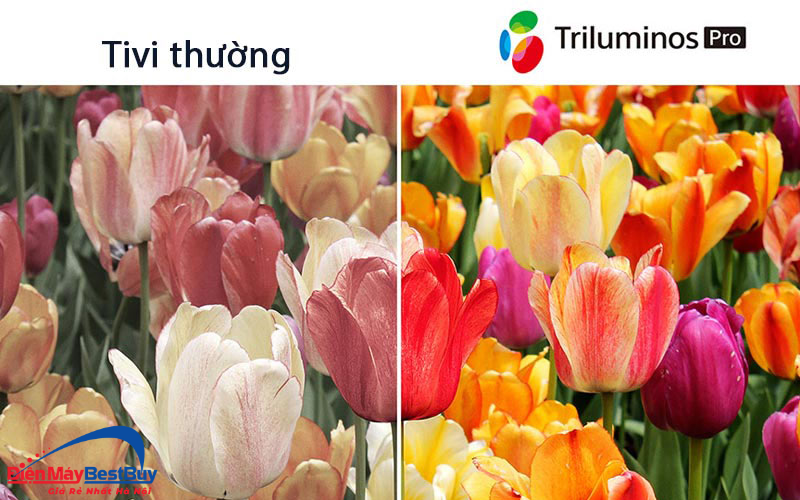 - Công nghệ Triluminos PRO mở rộng dải màu hiển thị, giúp tivi tái hiện hàng tỷ sắc thái màu khác nhau. Nhờ đó, hình ảnh trở nên tự nhiên và sống động hơn, đặc biệt khi xem phim thiên nhiên, chương trình thể thao hoặc các nội dung có nhiều màu sắc.