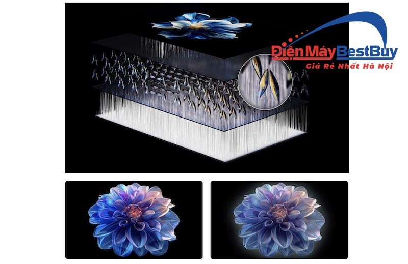 Sự đột phá trong cấu trúc phân tử hình cánh bướm của tấm nền HVA đã giúp tivi kiểm soát luồng ánh sáng cực kỳ tinh tế và chuẩn xác. Ưu điểm thiết kế này mang lại cho thiết bị độ tương phản gốc cực cao chạm mức 5000:1, thể hiện sắc đen sâu thẳm cùng sắc trắng thuần khiết ấn tượng hơn hẳn so với các tấm nền truyền thống.