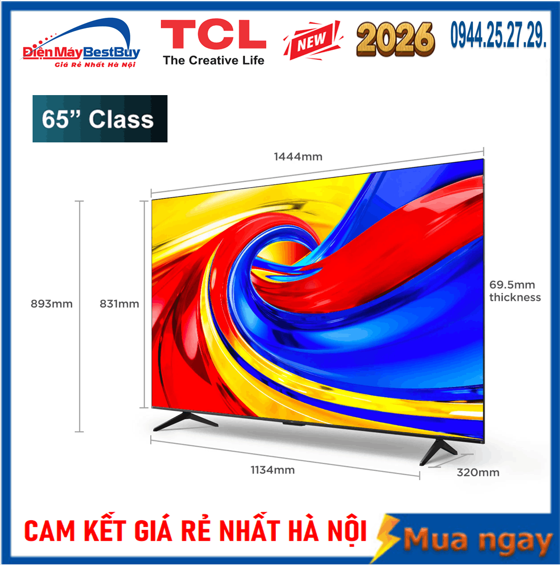 Ngang 144.4 cm - Cao 83.1 cm - Dày 6.95 cm