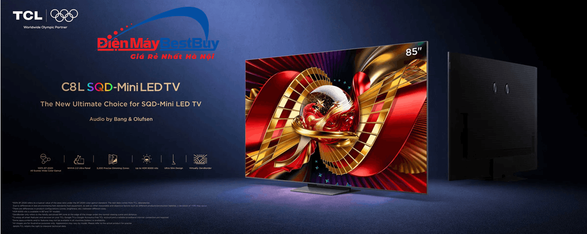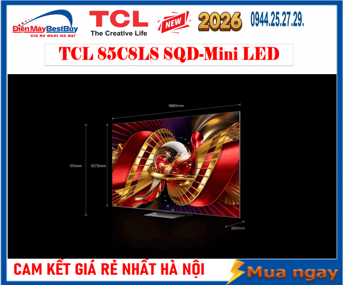 Siêu phẩm màn hình cực đại Google Tivi TCL SQD-Mini LED AI 4K 85 Inch 85C8L đang kiến tạo nên một tiêu chuẩn giải trí hoàn toàn mới cho phòng khách gia đình. Ngay sau đây, mời quý khách hàng cùng Điện máy Bestbuy tìm hiểu chi tiết những đột phá công nghệ biến thiết bị này thành tâm điểm của thị trường nghe nhìn.