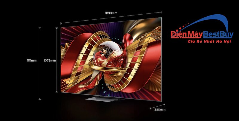 Khi khách hàng tra cứu TCL 85 inch tv dimensions hoặc 85 tv dimensions in cm, có thể thấy dù mang một tấm nền khổng lồ nhưng thiết kế tổng thể lại cực kỳ tinh tế, không hề tạo cảm giác thô cứng.