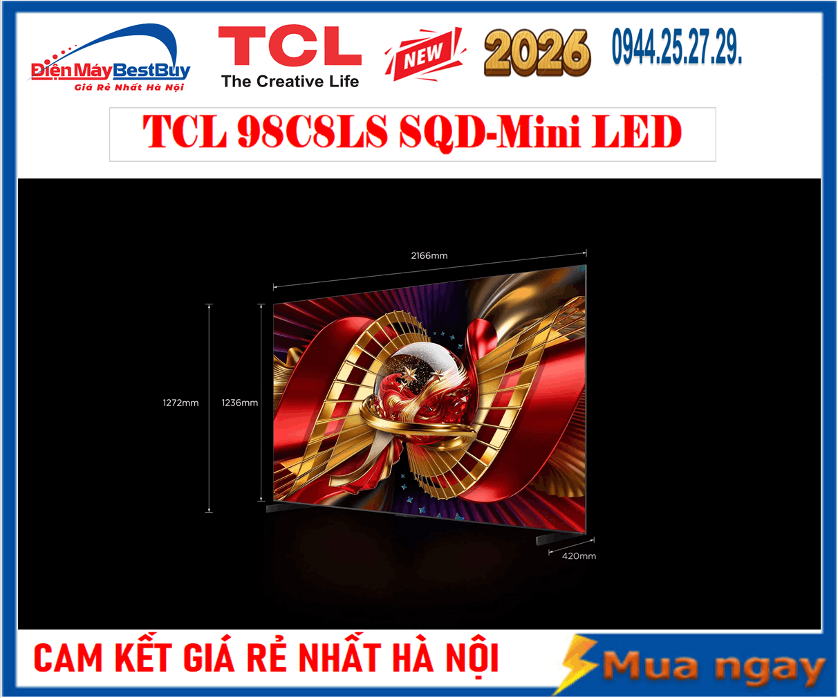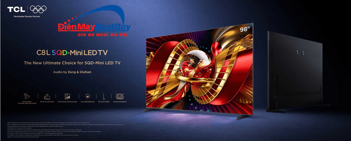 Siêu phẩm màn hình khổng lồ Google Tivi TCL SQD-Mini LED AI 4K 98 Inch 98C8L đang định hình lại tiêu chuẩn rạp hát tại gia cao cấp. Cùng Điện máy Bestbuy đi sâu tìm hiểu những đột phá công nghệ đỉnh cao được trang bị trên mẫu tivi này để thấy rõ sự đầu tư mạnh mẽ từ nhà sản xuất.