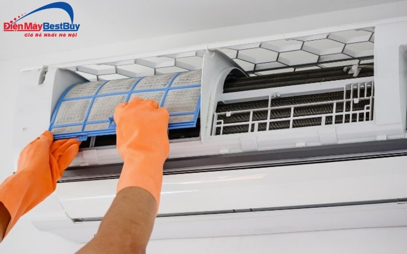 + Tháo lưới lọc ra và rửa bằng nước sạch. Nếu bụi bám nhiều, có thể dùng xà phòng loãng để làm sạch kỹ hơn. Sau khi rửa xong, để khô tự nhiên rồi mới lắp lại, tránh lắp khi còn ẩm.