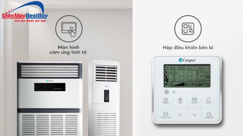 Bên cạnh đó, điều hòa Casper tủ đứng còn được trang bị hộp điều khiển từ xa giúp người dùng kiểm soát thiết bị linh hoạt hơn trong quá trình sử dụng. Với những không gian lớn như phòng họp, nhà hàng hoặc khu vực kinh doanh, việc có thể điều chỉnh điều hòa từ xa mang lại sự thuận tiện rõ rệt. Người dùng không cần di chuyển nhiều mà vẫn dễ dàng cài đặt chế độ phù hợp với số lượng người trong phòng hoặc điều kiện thời tiết thực tế.