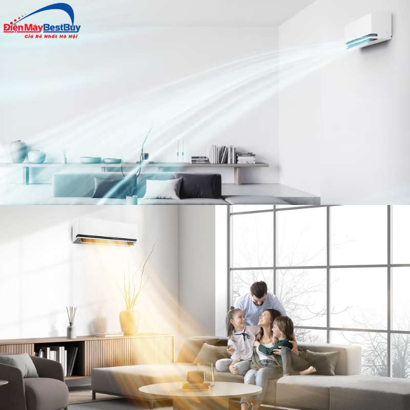 Bên cạnh đó, chế độ Power Heating giúp tăng tốc khả năng sưởi ấm trong những ngày lạnh. Với gia đình có trẻ nhỏ, người lớn tuổi hoặc người nhạy cảm với thời tiết, đây là một điểm cộng lớn. Không gian được làm ấm nhanh hơn, nhiệt độ ổn định hơn, từ đó giúp sinh hoạt hàng ngày thoải mái và an toàn hơn cho sức khỏe.