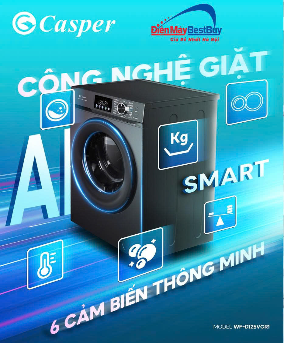 Máy giặt Casper WF-D125VGR1 tích hợp công nghệ AI Smart với hệ thống cảm biến thông minh có khả năng phân tích khối lượng đồ giặt và mức độ bẩn. Dựa trên dữ liệu thu thập được, máy sẽ tự động điều chỉnh lượng nước, thời gian giặt và chuyển động lồng giặt sao cho phù hợp nhất. Nhờ đó, quần áo được làm sạch hiệu quả, sợi vải được bảo vệ một cách tối ưu và lượng điện nước tiêu thụ cũng được tiết kiệm đáng kể.