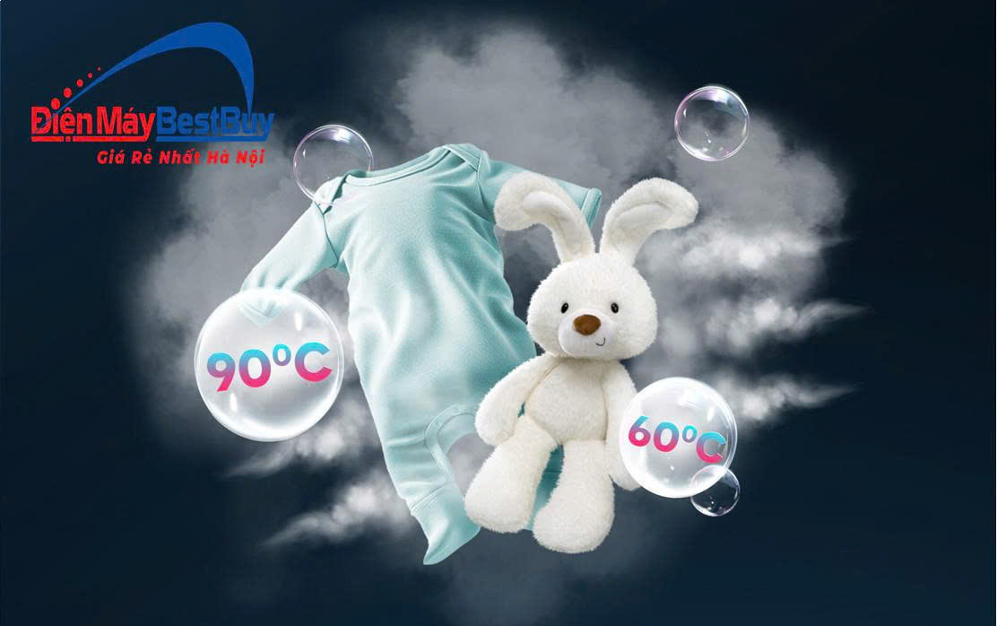 Công nghệ Steam Wash sử dụng nước nóng ở nhiệt độ 60°C kết hợp hơi nước nóng đạt tới 90°C để loại bỏ vi khuẩn, nấm mốc và các tác nhân gây dị ứng bám sâu trong sợi vải. Hơi nước thẩm thấu đều giúp quần áo sạch sâu, an toàn cho làn da. Thêm vào đó, hơi nước nóng cũng có tác dụng làm mềm sợi vải và giảm nhăn, tiết kiệm thời gian là ủi.