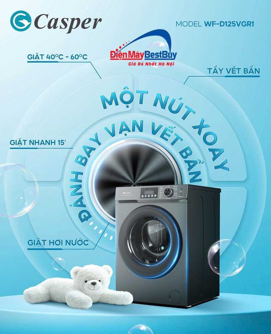 Điện máy BESTBUYS phân phối đa dạng các mẫu máy giặt đến từ thương hiệu Casper, trong đó có sản phẩm Casper WF-D125VGR1 ProWash 12.5 kg. Quý khách hàng khi chọn mua máy giặt Casper tại BESTBUYS có thể hoàn toàn yên tâm bởi sản phẩm được nhập khẩu chính hãng, giá thành rẻ nhất thị trường. Cùng với đó, BESTBUYS cũng hỗ trợ giao hàng tận nơi - nhanh chóng trên toàn quốc và có chính sách bảo hành tới 24 tháng.