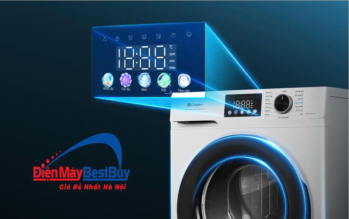 - Bảng điều khiển đa sắc màu, hiển thị rõ ràng các chương trình và trạng thái giặt. Các biểu tượng trực quan giúp người dùng, kể cả người lớn tuổi, dễ làm quen và thao tác mà không mất nhiều thời gian đọc hướng dẫn.