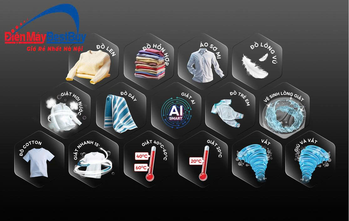 Nhờ đó, người dùng có thể tùy chọn chương trình phù hợp với từng loại vải và mức độ bẩn, giúp bảo vệ quần áo tốt hơn.