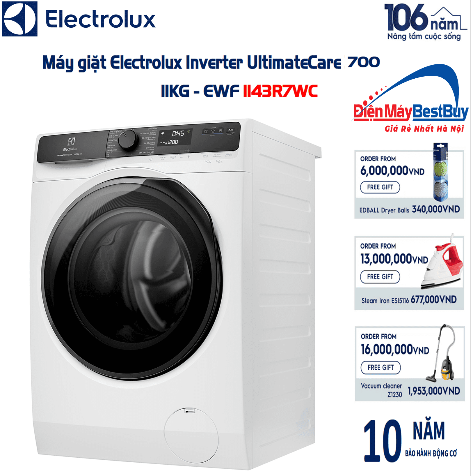 Máy giặt Electrolux EWF1143R7WC là một sản phẩm đáng để đầu tư. Với nhiều tính năng ưu việt như công nghệ AI SensorWash thông minh, chế độ giặt nhanh, chương trình diệt khuẩn, động cơ Inverter tiết kiệm điện và kết nối thông minh, sản phẩm này chắc chắn sẽ làm hài lòng ngay cả những khách hàng khó tính nhất.