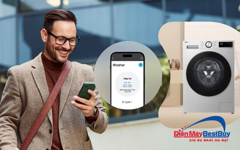 Máy giặt LG FX1411N5S có khả năng kết nối WiFi với ứng dụng ThinQ. Với tính năng này, người dùng có thể: