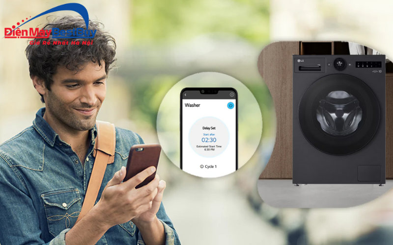 - Điều khiển từ xa bằng điện thoại: Máy giặt LG FX1412S3K có thể kết nối wi-fi. Người dùng có thể điều khiển máy giặt từ xa thông qua ứng dụng ThinQ trên điện thoại. Các tác vụ bao gồm: khởi động máy từ xa, kiểm tra tình trạng giặt, nhận thông báo khi hoàn tất.