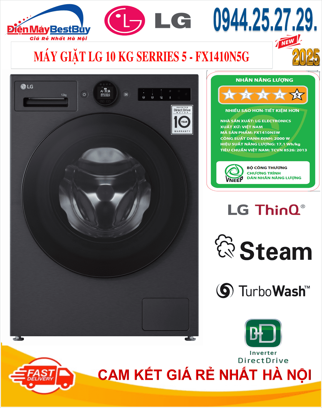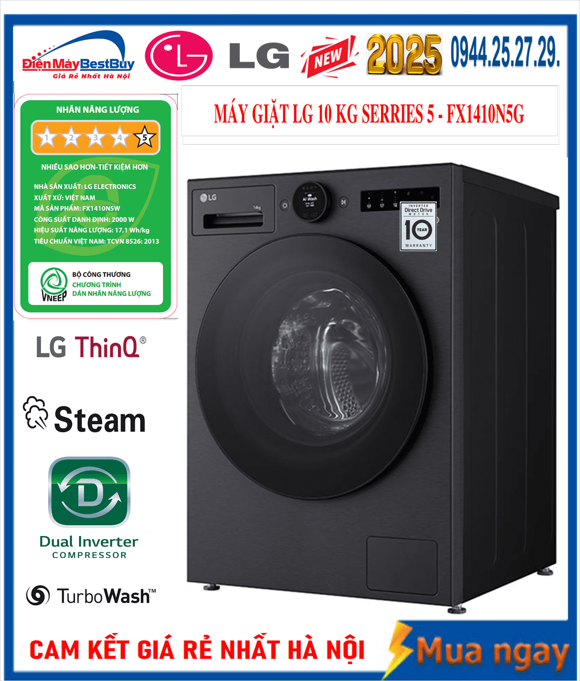 🏬 Hãy liên hệ ngay Điện Máy BestBuys để nhận tư vấn, đặt mua máy giặt LG AI DD Inverter 10 kg FX1410N5G giá tốt nhất và nhiều chương trình ưu đãi nhé.!