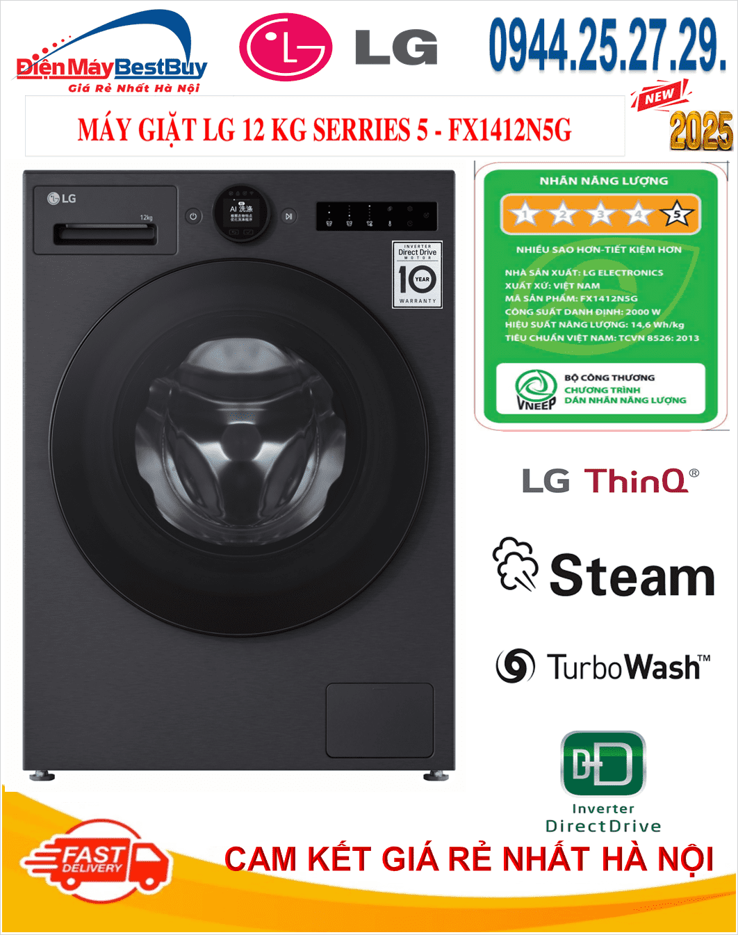 🏬 Hãy liên hệ ngay Điện Máy BestBuys để nhận tư vấn, đặt mua máy giặt LG AI DD Inverter 12 kg FX1412S3N5G giá tốt nhất và nhiều chương trình ưu đãi nhé.!