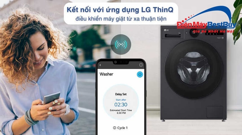 Máy giặt được trang bị công nghệ LG ThinQ™ (Wi-Fi), cho phép bạn điều khiển và giám sát thiết bị từ xa chỉ bằng một chạm trên điện thoại. Bạn có thể dễ dàng khởi động, tạm dừng hoặc kiểm tra trạng thái máy, thậm chí sử dụng trợ lý giọng nói để thao tác mà không cần đến gần máy giặt. Ứng dụng cũng hỗ trợ chức năng Chẩn đoán thông minh, giúp bạn nhanh chóng phát hiện và xử lý sự cố.