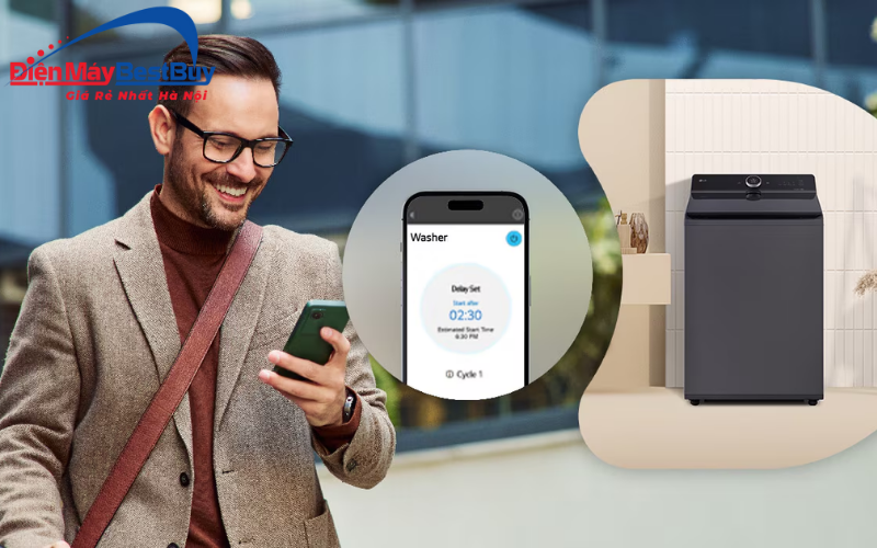 Máy giặt LG T2315DX5G có thể kết nối với ứng dụng LG ThinQ. Chỉ cần cài ứng dụng trên điện thoại, bạn có thể điều khiển máy giặt ở bất kỳ đâu có internet. Một số tiện ích hữu dụng có thể kể đến như: