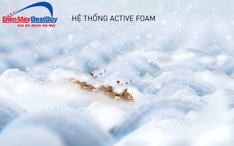 Công nghệ Active Foam đánh tan chất giặt thành lớp bọt siêu mịn ngay từ đầu chu trình. Lớp bọt này nhanh chóng thẩm thấu vào từng sợi vải, tiếp cận vết bẩn hiệu quả hơn so với cách hòa tan thông thường. Nhờ vậy, quần áo được giặt sạch đều, hạn chế tình trạng cặn bột giặt bám lại trên vải.