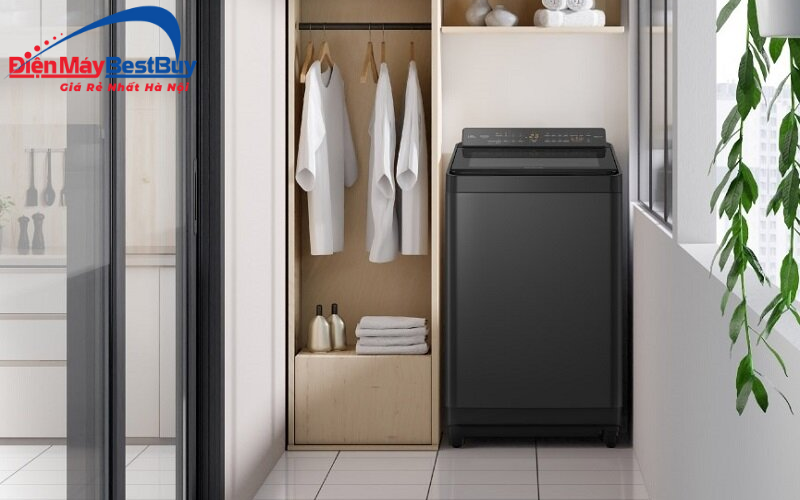 - Màu sắc chủ đạo là đen ánh kim sang trọng giúp máy giặt dễ dàng hòa hợp với không gian phòng giặt, phòng tắm, ban công, sân thượng,... Tông màu này cũng hạn chế bám bẩn và dễ lau chùi hơn so với các màu sáng.