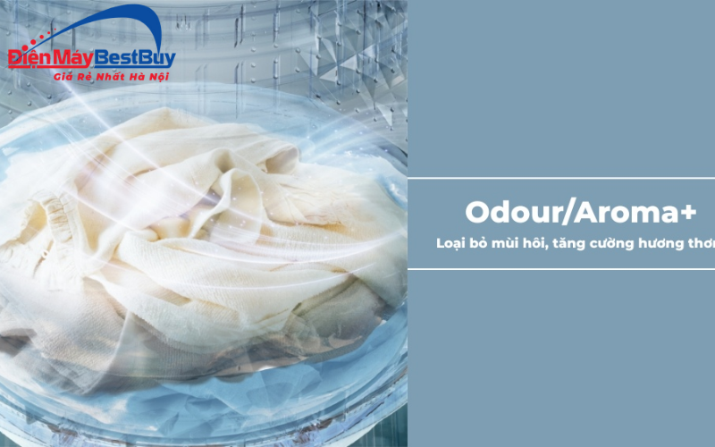 Chu trình Odour/Aroma+ là điểm cộng đáng giá cho những gia đình thường xuyên giặt quần áo mặc hàng ngày hoặc đồ thể thao. Chế độ này tập trung xử lý mùi hôi do mồ hôi hoặc ẩm mốc, giúp quần áo sau khi giặt luôn tươi mới. Bên cạnh khả năng khử mùi, Odour/Aroma+ còn tối ưu khả năng lưu hương của nước xả vải, mang lại cảm giác dễ chịu khi sử dụng quần áo.
