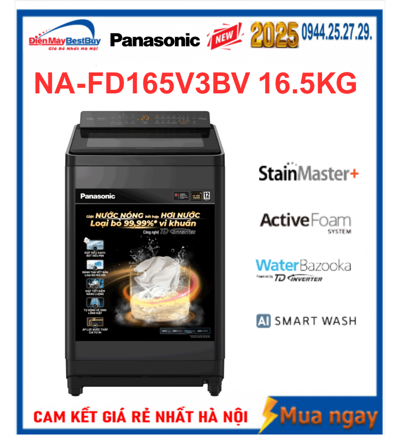 Với thiết kế chắc chắn, khối lượng giặt 16.5 kg cùng hàng loạt công nghệ hiện đại và chương trình giặt thông minh, máy giặt Panasonic NA-FD165V3BV Inverter lồng đứng là lựa chọn lý tưởng cho gia đình đông người. Dưới đây, mời các bạn cùng BESTBUYS khám phá rõ hơn về những ưu điểm nổi bật của mẫu máy giặt này.