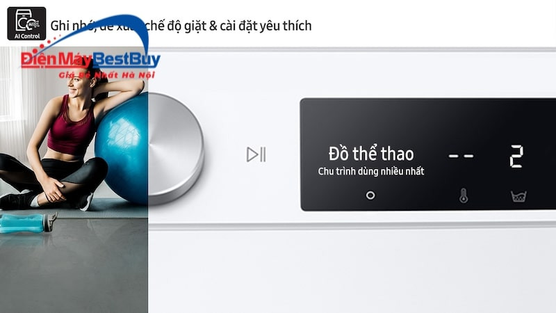 Đây là bộ não của máy giặt. Nó có khả năng tự động ghi nhớ thói quen giặt của bạn (ví dụ: giặt cotton, 30 độ, vắt 1200 vòng) và đề xuất chu trình yêu thích ngay khi bật máy, loại bỏ các bước cài đặt lặp lại. Màn hình hiển thị song ngữ Anh - Việt cũng rất trực quan và dễ hiểu.