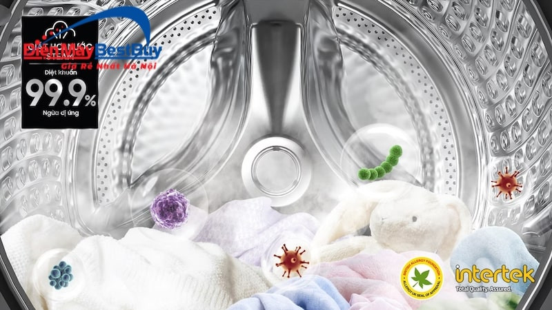 Tự động vệ sinh (Drum Clean+): Giữ lồng giặt và gioăng cửa luôn sạch sẽ, loại bỏ vi khuẩn gây mùi mà không cần hóa chất. Máy sẽ tự động thông báo khi đến lúc cần vệ sinh (sau 40 lần giặt).