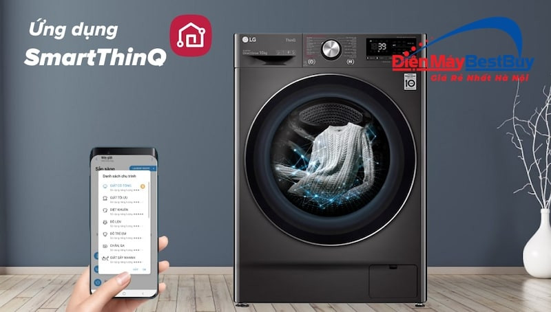 Tiện ích Tự động phân bổ nước giặt, Khóa trẻ em, Hẹn giờ giặt, Chỉnh nhiệt độ nước, Âm báo, Kết nối wifi và điều khiển từ xa qua ứng dụng LG ThinQ, Khóa cửa máy