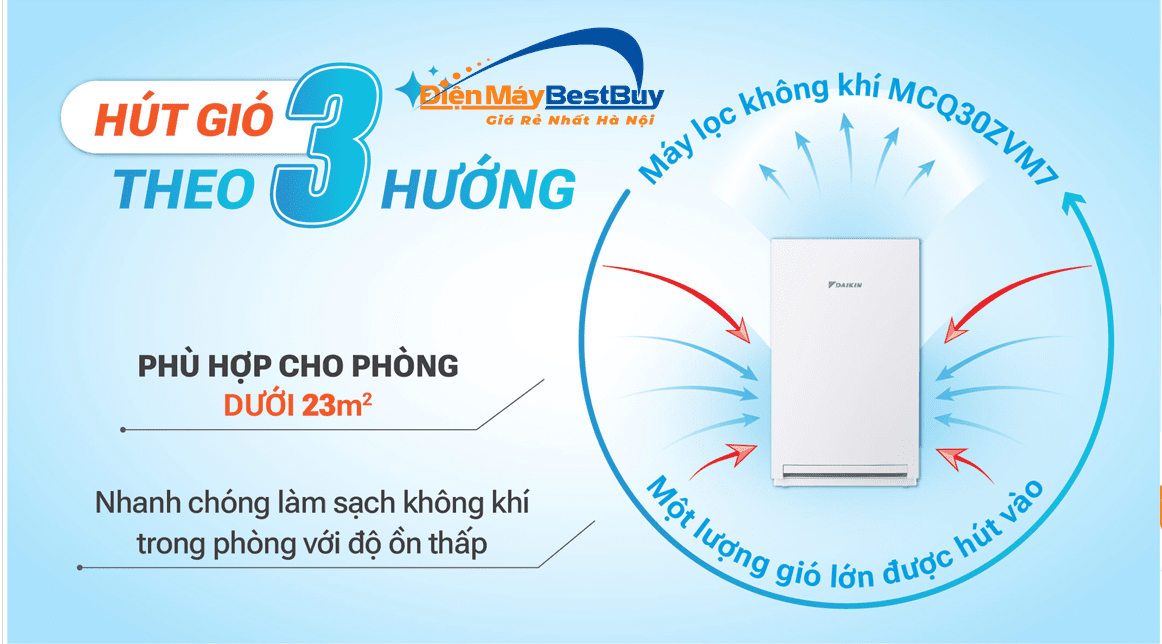 Sự kết hợp này giúp Daikin MCQ30ZVM7-G mang lại luồng không khí sạch sâu, ổn định và an toàn cho mọi thành viên trong gia đình.