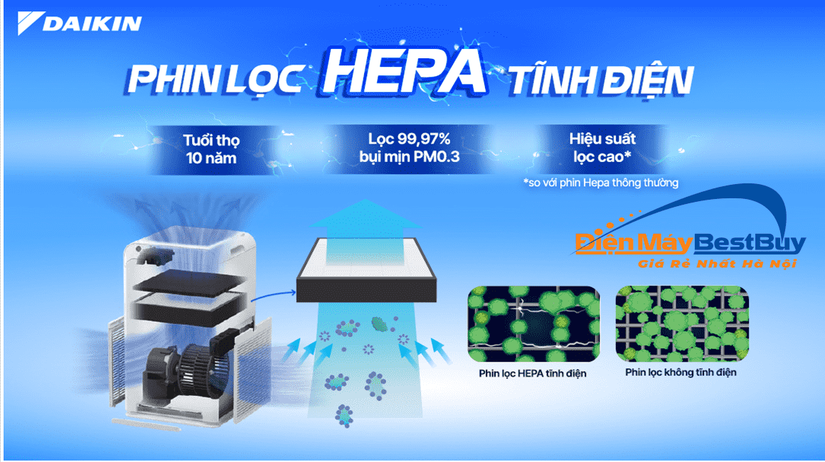 🔹 Lọc bụi mịn PM2.5, vi khuẩn, virus hiệu quả