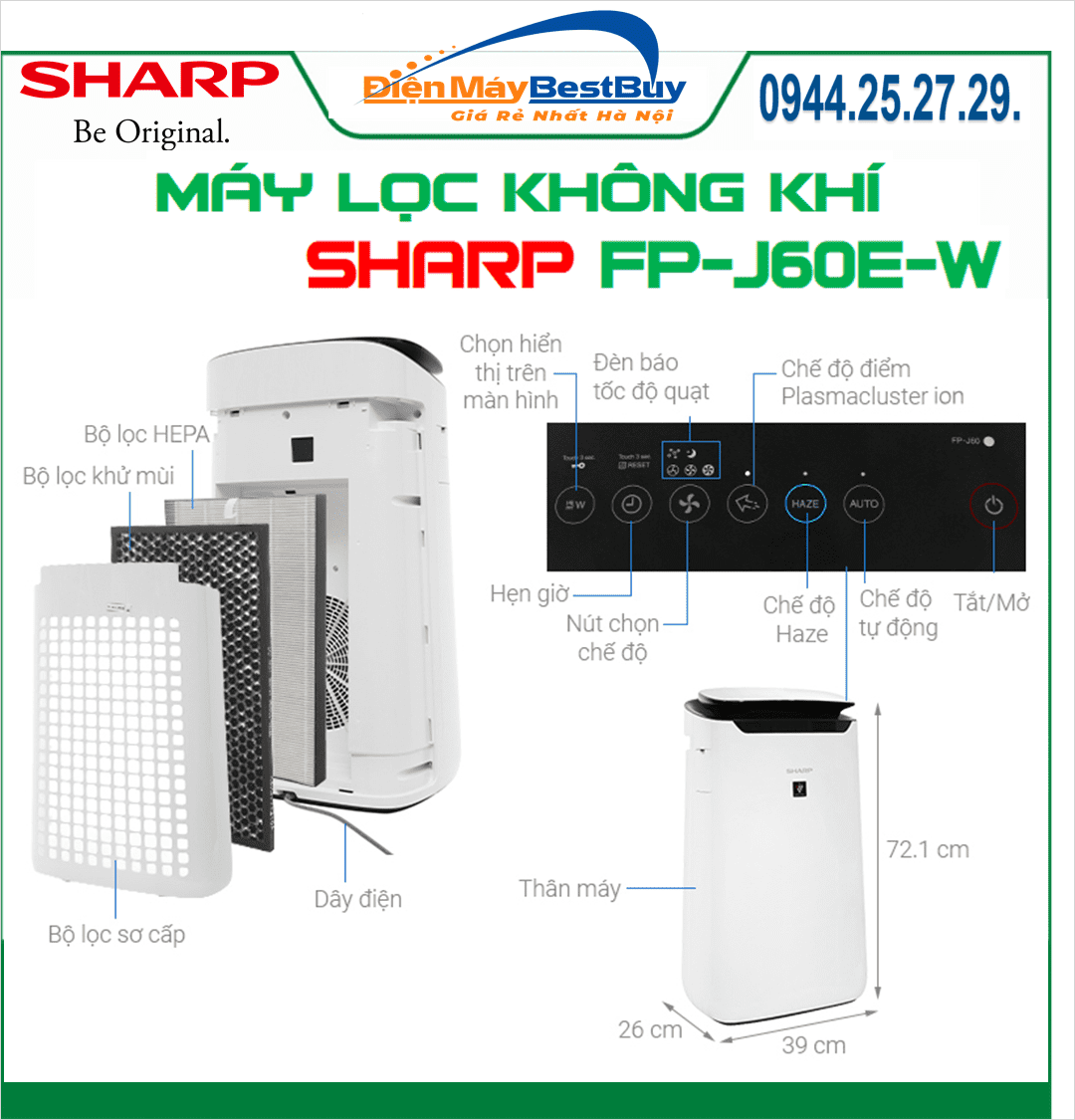 Với thiết kế đẹp, công suất phù hợp, công nghệ Plasmacluster Ion mật độ cao cùng hệ thống lọc 3 lớp và Inverter tiết kiệm điện, máy lọc không khí Sharp FP-J60E-W là lựa chọn đáng tin cậy cho các gia đình hiện đại. Sản phẩm không chỉ giúp làm sạch không khí mà còn góp phần bảo vệ sức khỏe lâu dài, nâng cao chất lượng cuộc sống trong môi trường ngày càng ô nhiễm.