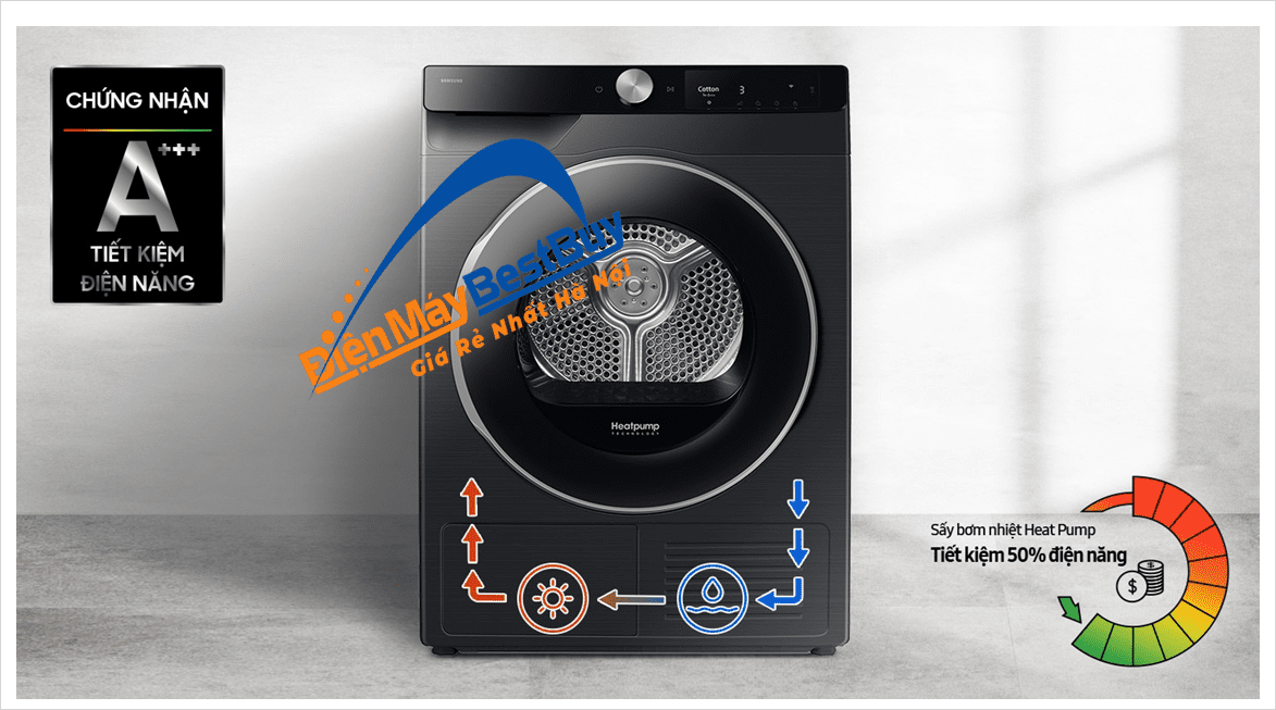 Điểm khác biệt nổi bật của Samsung DV90T6240LB/SV nằm ở công nghệ Heat Pump (bơm nhiệt) tiên tiến: