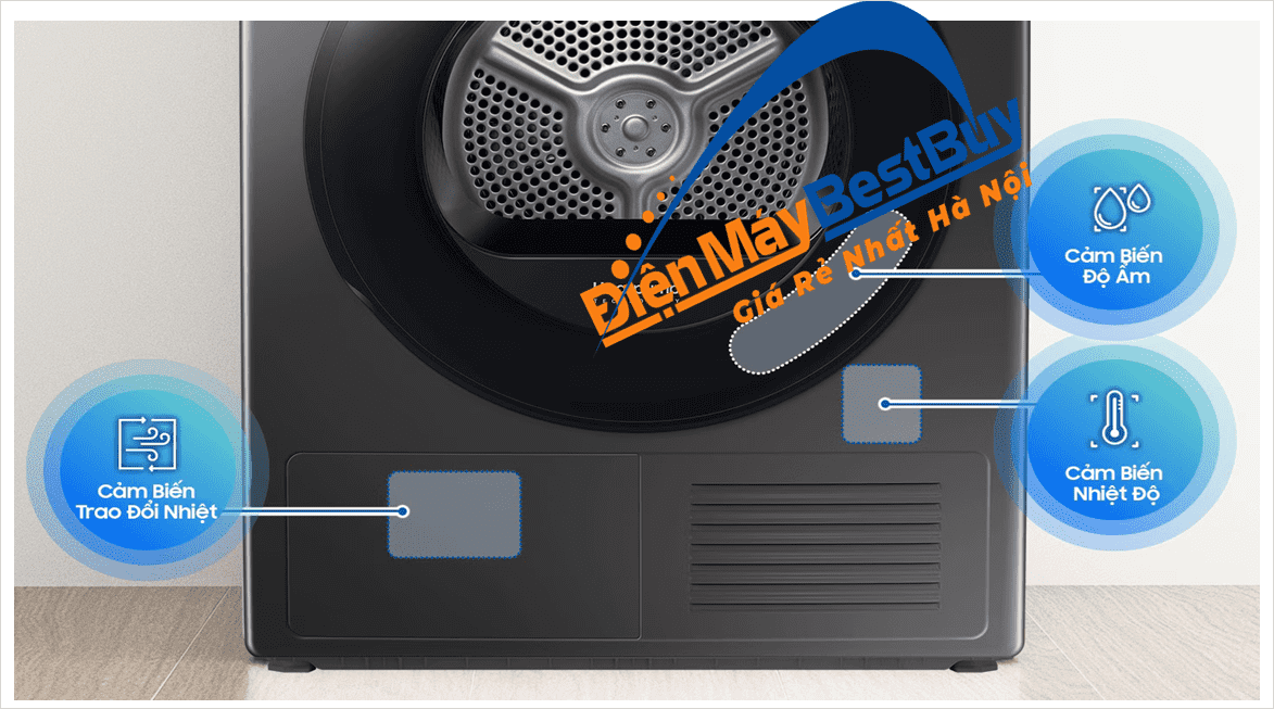 Samsung DV90T6240LB/SV tích hợp hệ thống cảm biến nhiệt độ và độ ẩm thông minh OptimalDry: