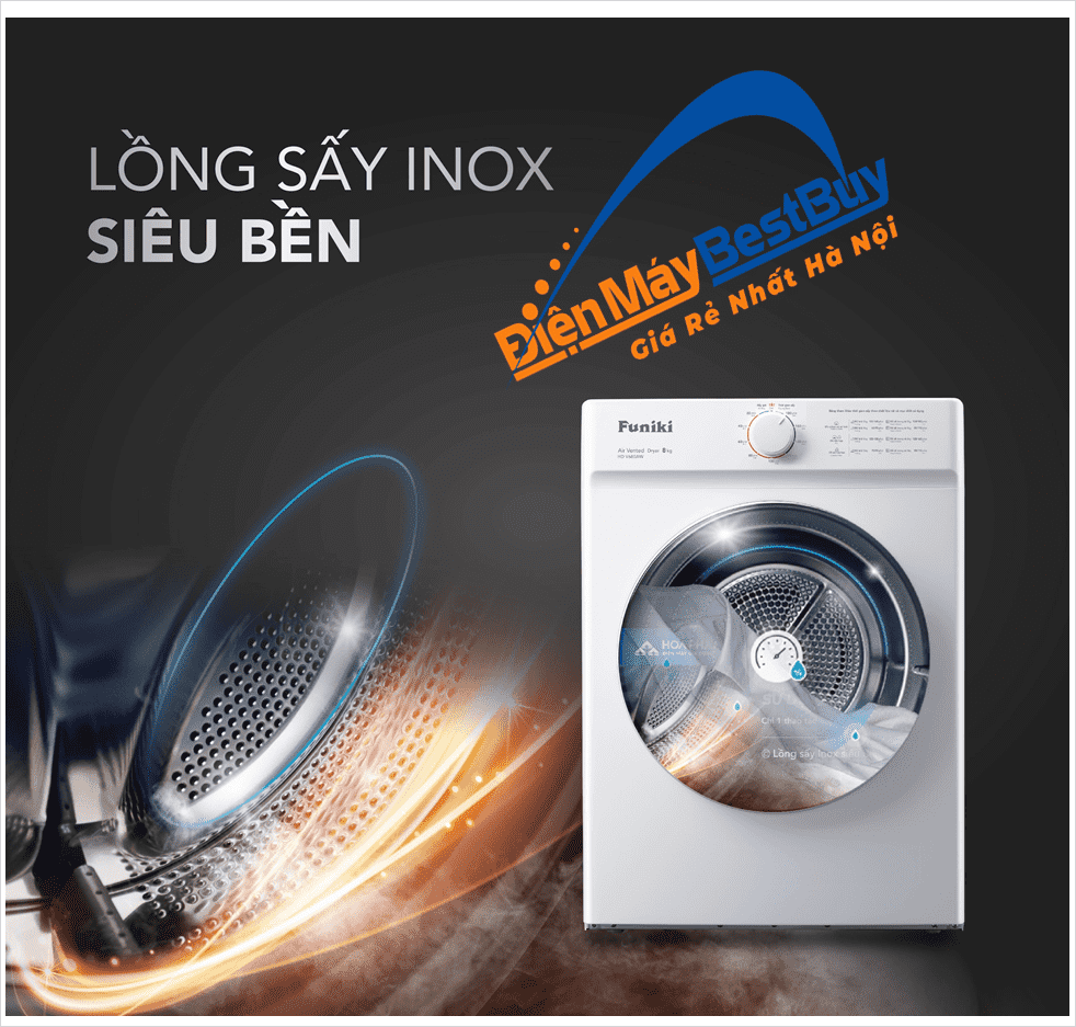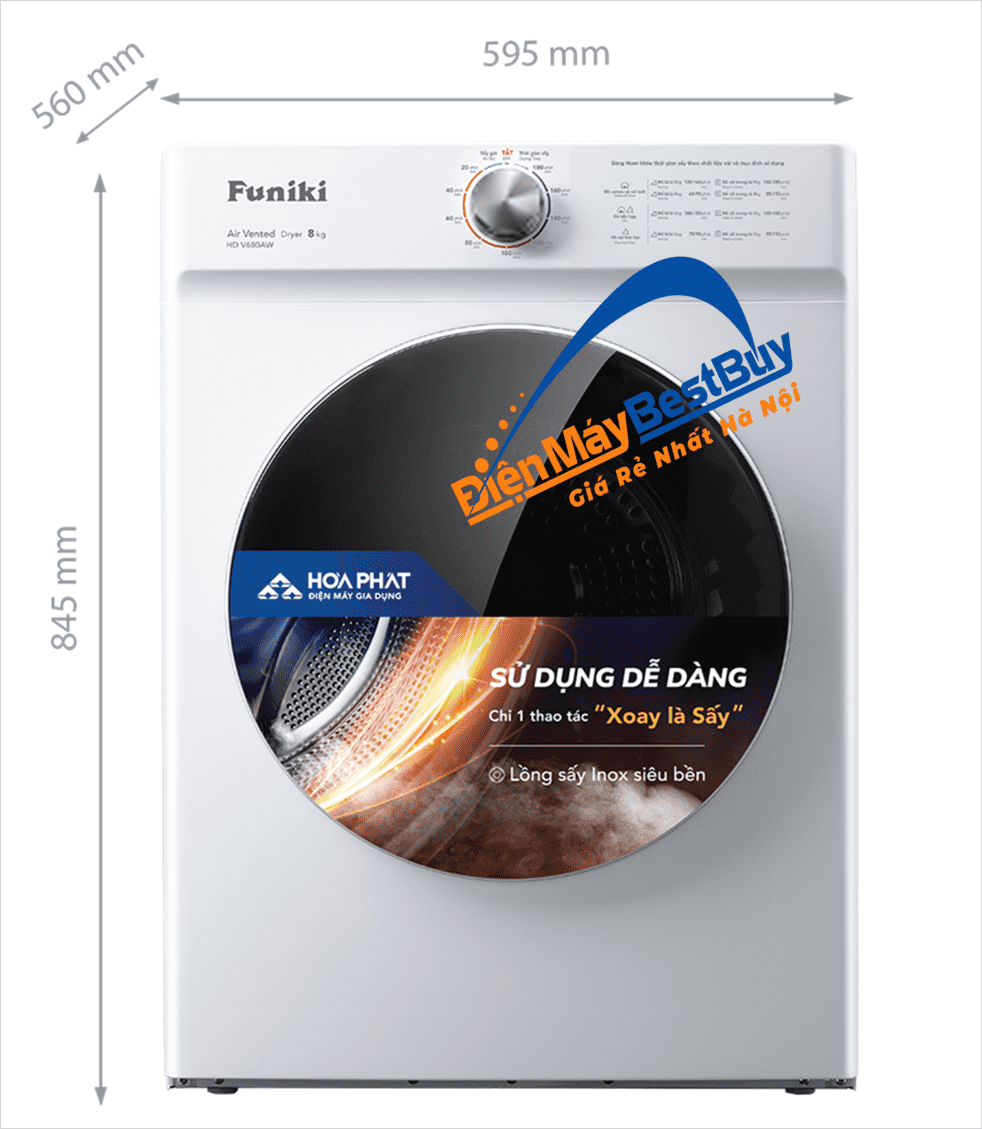 Funiki HD V680AW 8kg là máy sấy thông hơi giá tốt nhất trong phân khúc năm 2025, kết hợp hoàn hảo giữa hiệu quả sấy, tiết kiệm năng lượng và độ bền cao.